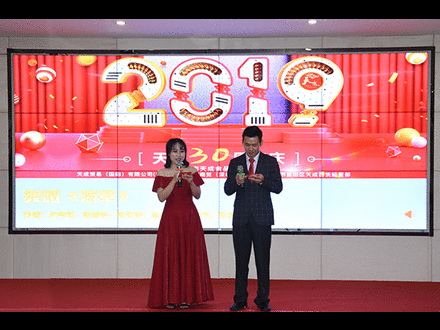 接著公司董事長江紅娜女士和董事總經(jīng)理林權(quán)炎先生分別上臺致辭。致辭中表達(dá)了對各位合作嘉賓歷年來對天成的支持與厚愛,回顧了2018年的公司總體情況以及表達(dá)了對來年公司發(fā)展越來越好的信心和美好的期盼,最后向全體員工和嘉賓致以美好的新年祝福。
